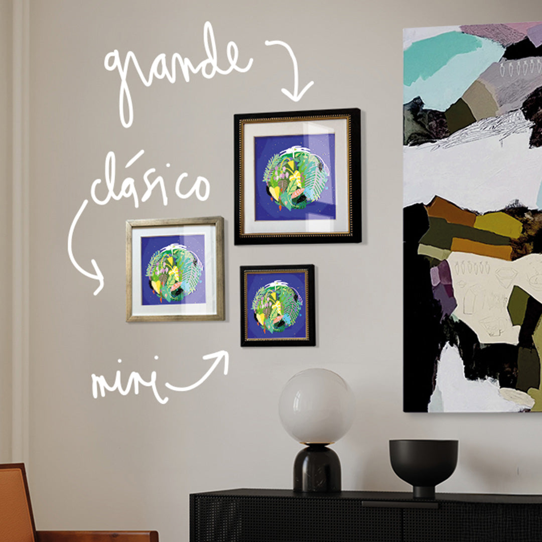 Nuestro envoltorio es de burbujas para asegurar la protección del vidrio. Los Prints S y M tienen opción bolsa de tela para regalo.